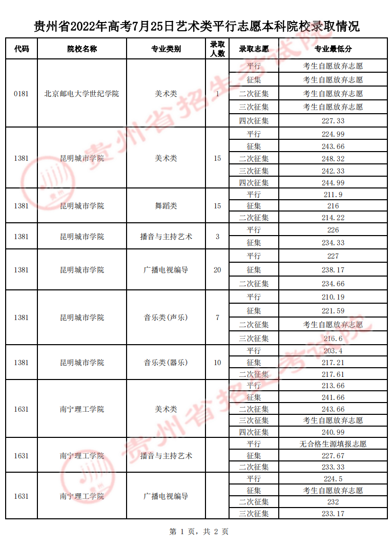 贵阳市招考网 www.gyzkzx.cn 2022-07-26 11:06 来源: 贵州省招生考试院