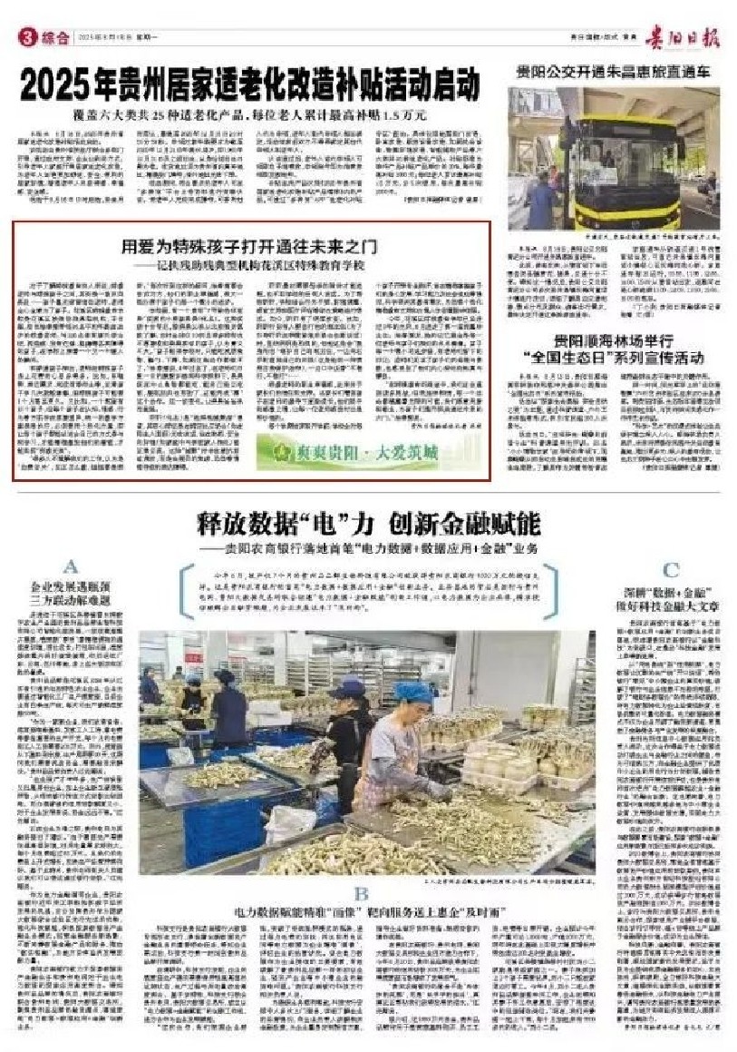 近日,《贵阳日报》关注花溪区特殊教育学校,刊发了文章《用爱为特殊孩子打开通往未来之门——记扶残助残典型机构花溪区特殊教育学校》。一起来看——