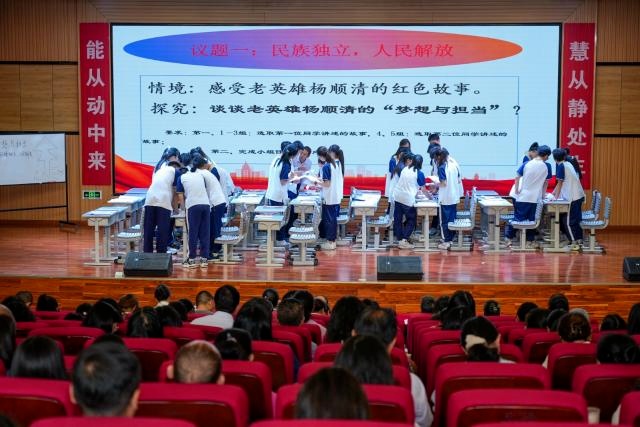 在贵阳世纪英才实验学校,清镇市红枫第三小学教师王兴敏、清镇市第二中学教育集团教师漆道艳以及清镇市第一中学教师毛永飞,以清镇本地红色资源——老红军杨顺清的事迹为主线,围绕“杨顺清的故事”“梦想与担当”等主题,分学段进行了课堂教学展示,全市小学、初中及高中各学段思政教师现场观摩,共同探讨思政课教学新路径。