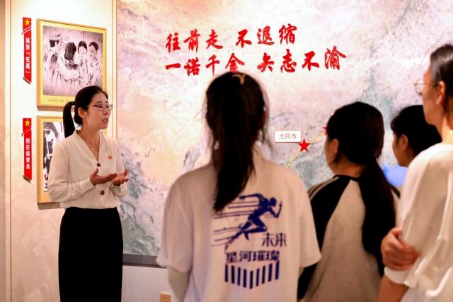 贵阳幼儿师范高等专科学校的同学们在杨顺清事迹展陈室接受现场授课。