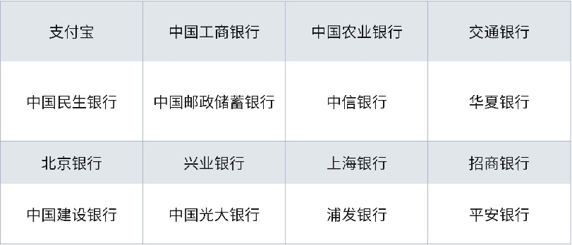 网上支付支持的银行(部分)或其他支付方式:更多支持的银行请在支付页面跳转的第三方支付平台查询。