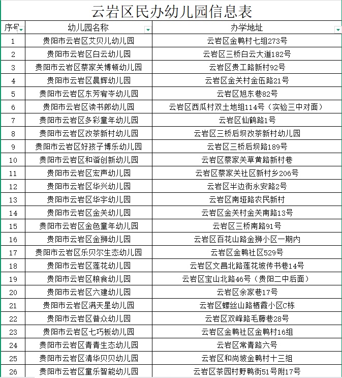 为进一步规范云岩区民办幼儿园办学行为,根据《中华人民共和国民办教育促进法》及省市相关部门的文件精神,现将云岩区2025年民办幼儿园白名单(第一批)面向社会公告。